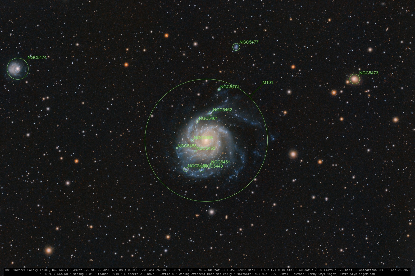 - Camera: cooled ZWO ASI 2600MC at –10°C