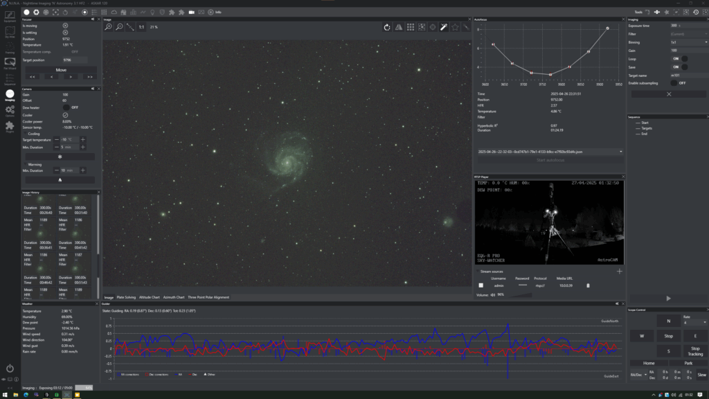 This configuration delivers a balanced combination of optical quality, tracking accuracy, and automation, enabling high-resolution astrophotography with minimal manual intervention. It is optimized for extended exposure deep-sky imaging while retaining flexibility for shorter planetary sessions.