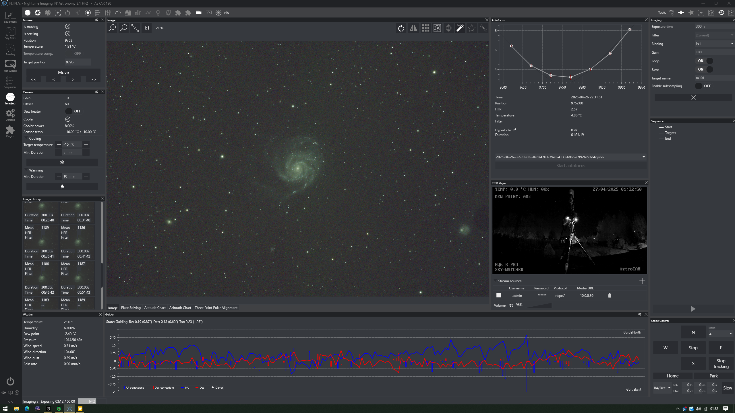 - Guide Camera: ZWO ASI 220MM Mini (monochrome) for high-sensitivity autoguiding