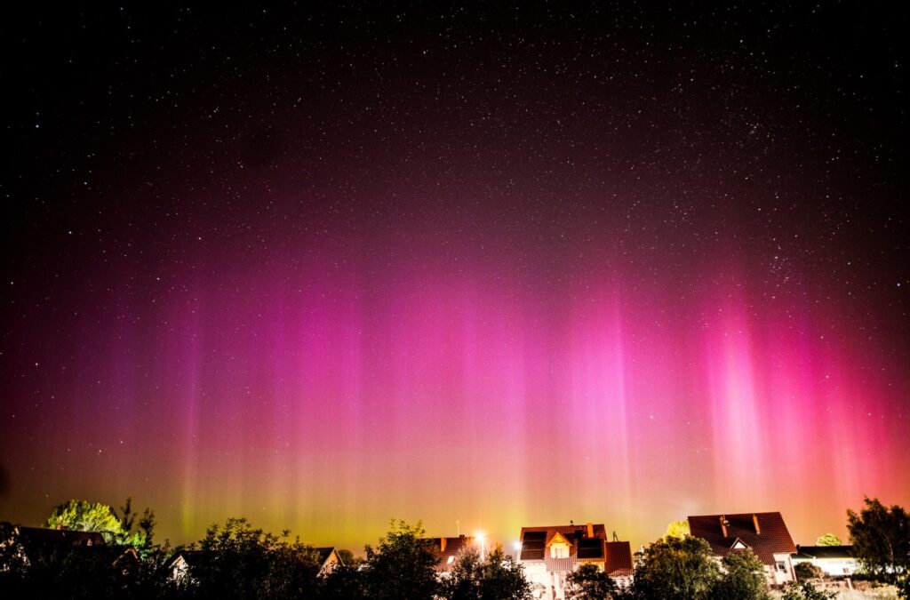 On that evening, auroras were reported across Poland, Germany, the United Kingdom, and even parts of central Europe, far outside their usual geographic range. The extraordinary visibility was caused by a strong coronal mass ejection (CME) from the Sun, which interacted with Earth’s magnetic field and pushed auroral activity well below the Arctic Circle.